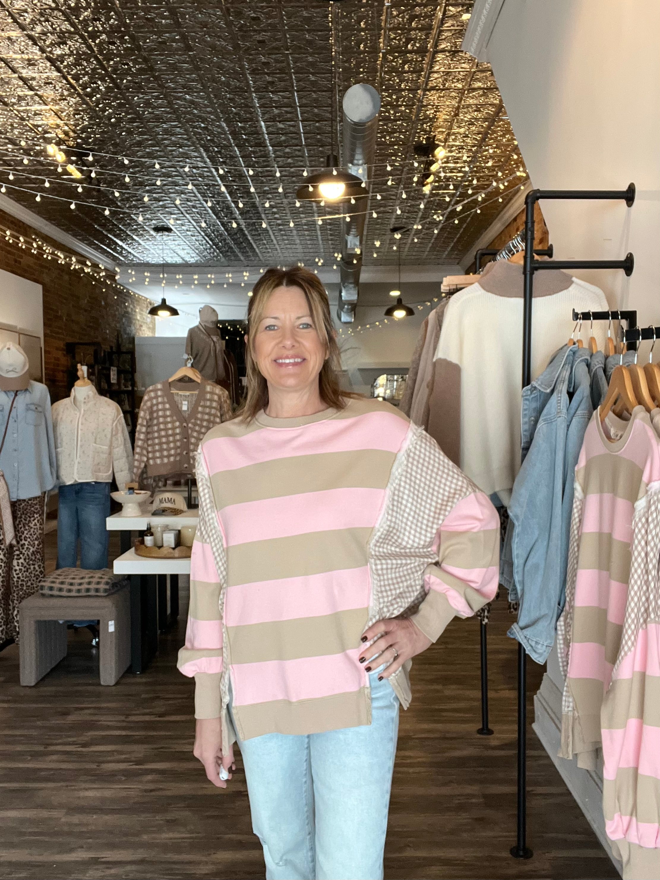 Pink Contrast Pullover